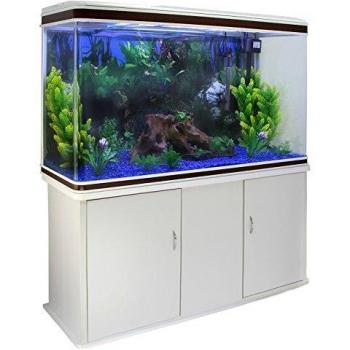 Acquario 300 Litri con Armadietto Bianco e Kit con Fondale, Piante e Ghiaia Blu