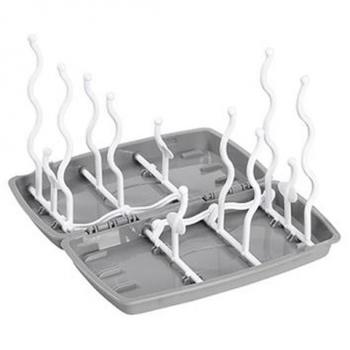 Scolapiatti in plastica trasparente con supporti a forma di tulipano che si adattano a bottiglie e succhietti di diverse dimensioni. Il design leggero, pieghevole e antiscivolo garantisce stabilità e facilità di pulizia, ideale per uso domestico o in viaggio.