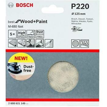 Bosch Professional 2608621162 Carta Vetro M480 Ideale per Wood and Paint, Legno e Tinta, Grana Dimensione P80, Accessorio per Levigatrice Rotorbitale, Diametro 150 mm, Confezione da 5
