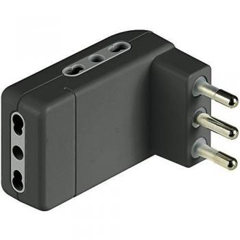 Adattatore BTicino S3624GE grigio, progettato per prese tedesche Schuko, presenta una spina a 16A con polo di terra integrato. Il corpo in plastica rinforzata assicura resistenza al calore e durabilità, mentre le dimensioni compatte lo rendono ideale per installazioni domestiche o professionali senza occupare spazio.