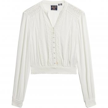 Camicetta a maniche lunghe smocked con bordo in pizzo, finitura ecru – Superdry