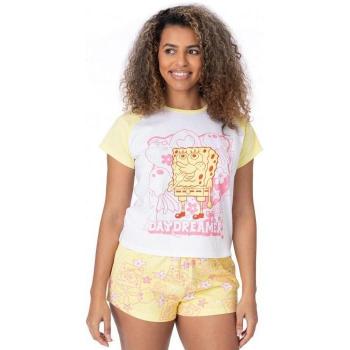 Set pigiama corto da donna in nero con grafica di SpongeBob SquarePants, realizzato in cotone morbido e traspirante. Maniche corte, collo a V e tasca laterale offrono comfort e stile per una notte divertente.