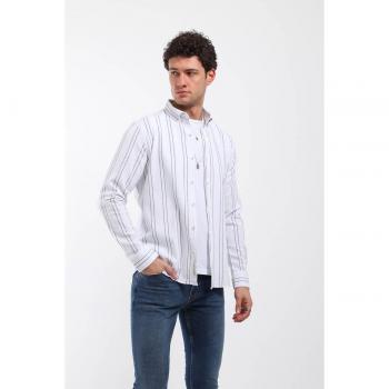 Cămașă cu mânecă lungă în dungi verticale pentru bărbați, verde L verde