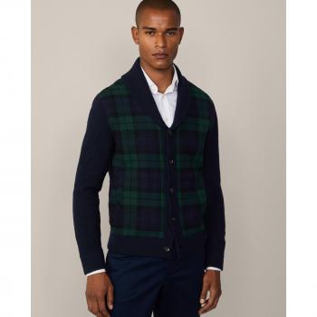Cardigan Shawl Hackett a Quadri Blu Notte XS