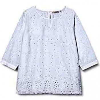 Carmakoma T-Shirt a Maniche Lunghe 3/4 CARAMA con Ricamo Anglaise Bianco Brillante – 42 Donna
