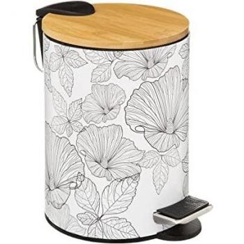 Cestino per rifiuti con coperchio in bambù naturéo da 5 l, bianco - 5five