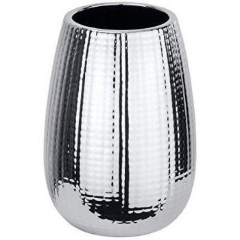 Vaso Portaspazzolino Dakar in ceramica con rilievo e finitura cromata, ø 8,3x11,6 cm