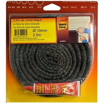 Pyro Feu Guarnizione refrattaria e Tubo di Colla, Fibra di Vetro, Nero, Ø 10 mm x 2,5 m