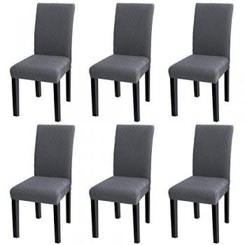 YISUN Coprisedie con Schienale in Spandex, Moderno Coprisedia Elastico per Coprisedie Sala da Pranzo Rivestimento Sfoderabile con Schienale Copertura Protettiva (A-Grigio, 6)