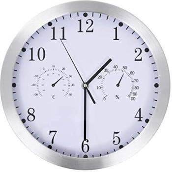 Orologio da Parete Quarzo Bianco con Igrometro e Termometro 30 cm