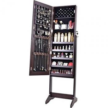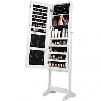 Lvifur Armadietto Portagioie con Luci LED e Specchio, Design Due in Uno, Serratura a Chiave