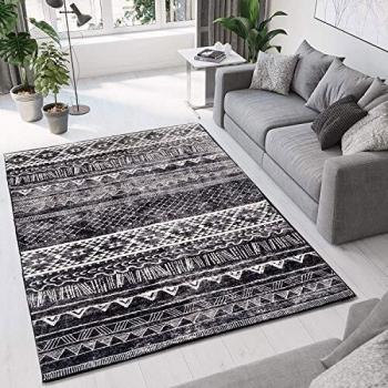 Tappeto Soggiorno a Pelo Corto in Bianco e Nero