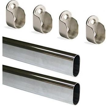 EMUCA Lotto di 2 guide ovali per armadi 30x15mm lunghezza 0,95m con staffe, Acciaio e Zama, Cromato lucido