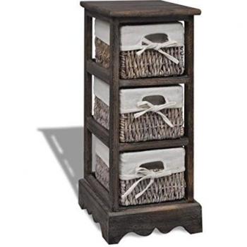 VidaXL Struttura in legno con 3 ceste tessute marroni