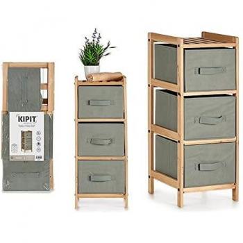 Cassettiera grigia in legno con dimensioni 34 x 66 x 36 cm