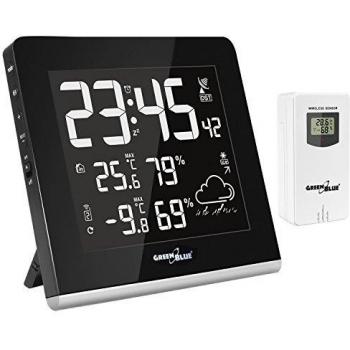 Stazione Meteorologica WiFi DCF in/out Fasi lunari GreenBlue GB146 (Nero)