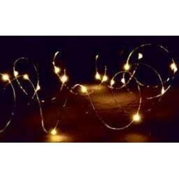 Stringa di Luci LED Bianche Calde a Batteria con 20 Gocce su Filo di Rame