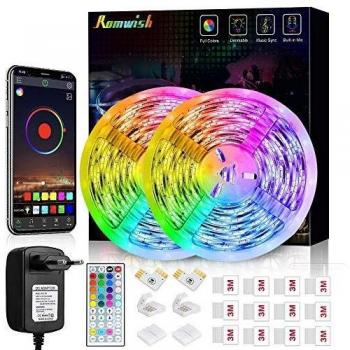 Striscia 5M, Romwish Luci Colorate RGB SMD 5050 Bluetooth Musica Sync Controllo
