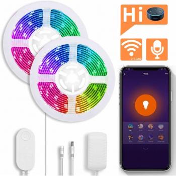 Descrizione: Striscia LED intelligente con controllo del telefono, compatibile con Android e iOS System, Alexa e Google Home, 19.7ft (2x3M)