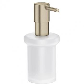 Dispenser di sapone liquido Grohe Essentials cromato con finitura lucida che si adatta a qualsiasi bagno moderno. Il suo meccanismo a pressione offre dosaggi precisi e igienici, mentre il corpo in metallo garantisce resistenza all’umidità e durata estetica.