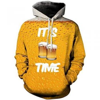 Hoodie Uomo TUONROAD – Felpa con Design Birra 3D e Tasche a Cintura