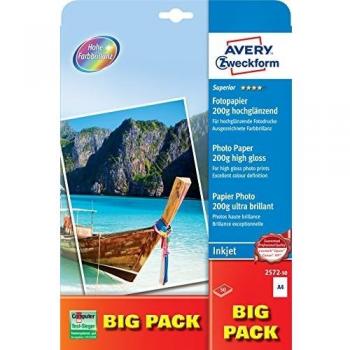 Avery Instant Dry Technology- Carta Fotografica Lucida per Stampanti Inkjet Bianca