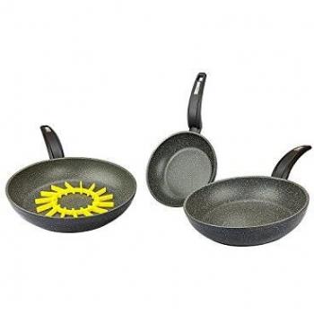 Padelle da Cucinare Hercules 20‑24‑28 cm – Moneta in Alluminio Antiaderente, Effetto Pietra, Con Sottopentola (3 pezzi)