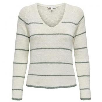 Pullover Donna V-Ausschnitt ONLY "ONLGEENA" Strisce Cloud Dancer, Taglia S, 65% Poliacrilico e 35% Poliammide