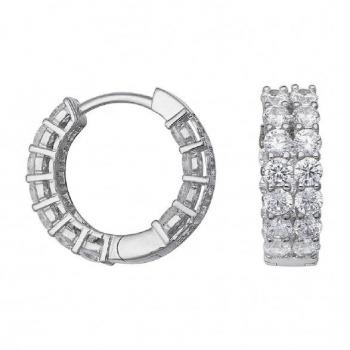 Orecchini a cerchio in argento 925, decorati con zirconi bianchi che ricordano comete luminose; diametro esterno di 20 mm, larghezza 3 mm e profondità 2,86 mm, perfetti per un look sofisticato e leggero.