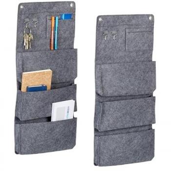Organizer da Parete in Feltro Grigio - Set di 2 con 6 Cestini, Portaoggetti per Cucina e Bagno, 64,5 x 25 cm
