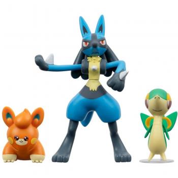 Figure da Battaglia Pokémon Jazwares 3-Pack Serpifeu, Pamo, Lucario 5 cm