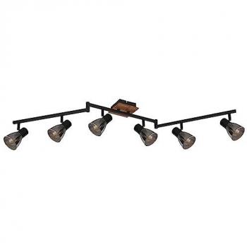 Plafoniera faretto in legno lampade in legno 6 fiamme, faretti mobili stile country, metallo marrone grafite, 6 prese GU10, LxPxH 115x6x12cm
