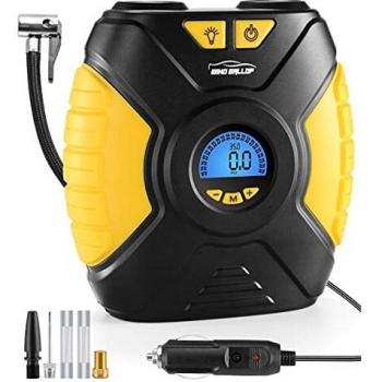 Carsun Compressore d'aria portatile per automobile 12V 150 PSI Pompa di gonfiaggio digitale per pneumatici Lampada a LED Compressore per pompa di compressione pneumatici per auto Motorcy Ball Digital display giallo