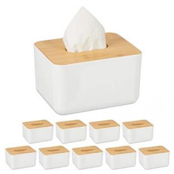Porta Fazzoletti Bianco in Bambù - 2 Pezzi con Base Scorrevole