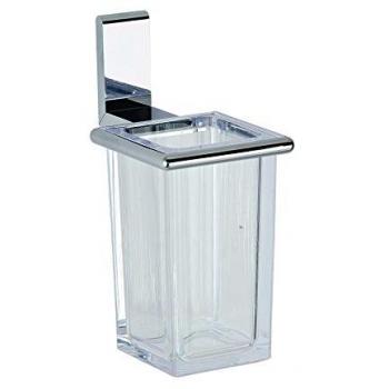 Porta spazzolini in ceramica bianca con struttura metallica, fissato a parete, un accessorio che combina estetica e praticità: il supporto trasparente favorisce la ventilazione mentre mantiene l’area pulita e ordinata.