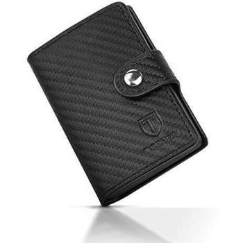 Portafoglio Crediti in Pelle Carbonio, 1 Hand‑Push, 2 Fessure, 1 Tasca