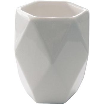 Porta spazzolino Gedy Gemini in resina bianca, dimensioni di circa 8,7x8,7x11 cm, con bordo arrotondato che previene scivolamenti e una finitura opaca elegante. Il bicchiere trasparente mantiene gli spazzolini asciutti e visibili, facilitando la pulizia quotidiana e aggiungendo un tocco di stile moderno al bagno.
