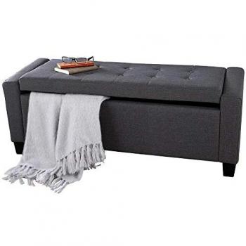Cassapanca Pouf Contenitore Imbottito in Tessuto Grigio Scuro con Struttura in Legno e Seduta Apribile 110x40x40 cm