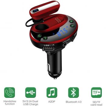 Trasmettitore Bluetooth con luce blu che illumina il cruscotto creando un’atmosfera rilassante, consente chiamate a mani libere e ascolto musicale via FM dal tuo smartphone. Il kit include due porte USB (5V/2,4A e 1A) per caricare dispositivi, supporto per scheda SD e disco USB, perfetto per viaggi senza fili.
