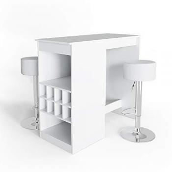 Set Tavolo Bar Vicco Ross, Bianco, 115 x 50 cm e 2 sgabelli