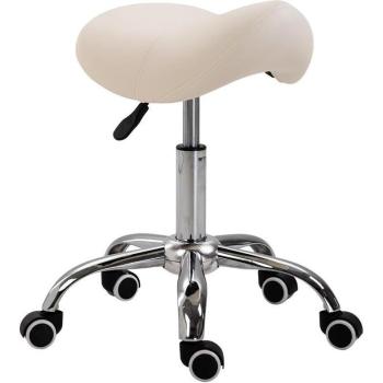 Sgabello con Ruote Regolabile in Altezza per Parrucchiere Estetista Ragazzi Studio Salone Sedia Girevole in Ecopelle e Acciaio Bianco - Yaheetech