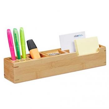 Relaxdays - 4x Portaoggetti da Scrivania in Bambù, 11 Scomparti, Organizzatore da Ufficio e Studio, hlp 6 x 32 x 7 cm, legno