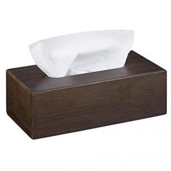 Porta Fazzoletti in Bambù, Set di 2, Base Scorrevole, 15.5 x 14.5 x 14.5 cm