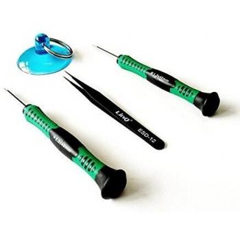 Kit di attrezzi Jiafa per aprire l’iPhone 4 con pinze a punta fine, spazzola in nylon e chiave a croce antiscivolo; permette la rimozione delicata della batteria, dei cavi interni e delle viti senza graffi.