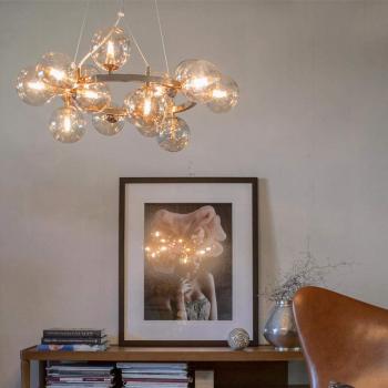 By Rydéns Splendor Lampadario a sospensione 15 luci ambra con sfere di vetro oro