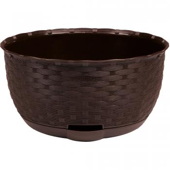 Vaso rettangolare in plastica con finitura rattan marrone, dimensioni 50x18x16 cm. La sua struttura leggera ospita una riserva d’acqua che assicura un’umidità costante al terreno, ideale per piante da balcone o terrazza. Il design moderno si integra perfettamente in ambienti interni ed esterni, offrendo un tocco naturale e pratico allo spazio verde.