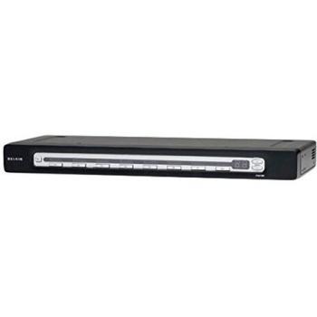Switch KVM Belkin OmniView nero con due porte DVI‑I e hub USB integrato per tastiera e mouse. Permette di passare tra due monitor collegati a un singolo computer, mantenendo la connessione delle periferiche senza cavi extra.