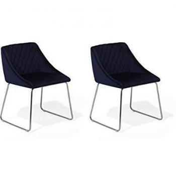 Set di 2 sedie da pranzo in tessuto velluto blu navy gambe in metallo cromato stile moderno