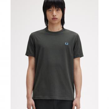 T-shirt Uomo Ringer FRED PERRY Verde Notte 100% Cotone