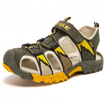 Sandali VITIKE a punta chiusa per bambini, colore verde brillante, realizzati con tessuto leggero che respira e si asciuga in pochi minuti; la suola antiscivolo garantisce stabilità su terreni scoscesi o bagnati, mentre la struttura flessibile assicura libertà di movimento durante corse, passeggiate al parco o giochi in acqua.